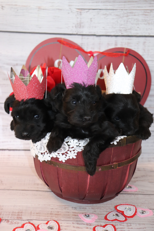 With the Schnoodle puppies the coats range from Salt & Pepper, Black & White, Solid Black